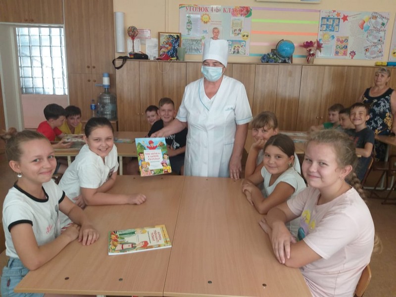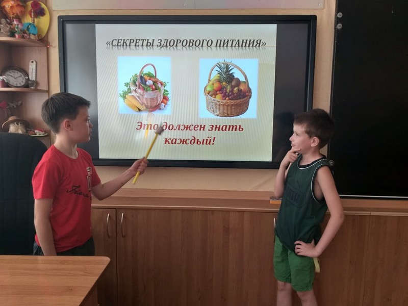 Медсестра Героева Людмила Васильевна рассказала ребятам о «Секретах здорового питания». Китаева Виктория Константиновна организовала круглый стол, за которым состоялся «Разговор о здоровом и правильном питании». Под руководством воспитателя Сорокиной Татьяны Владимировны дети нарисовали рисунки на тему «Здоровый образ жизни». Воспитатель Лунченко Лариса Витальевна показала детям своего отряда презентацию «Здоровье не купишь…»