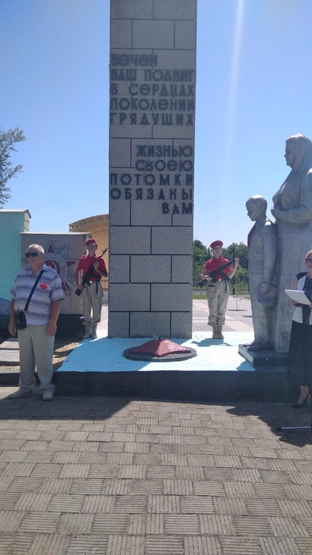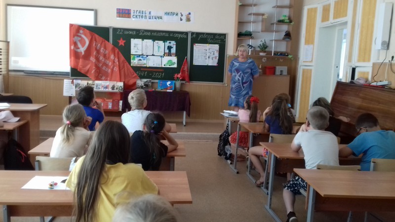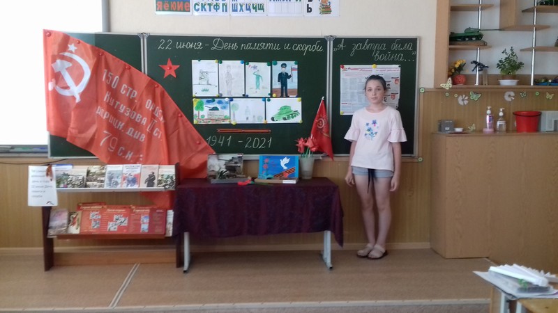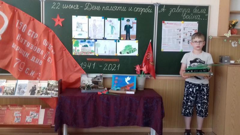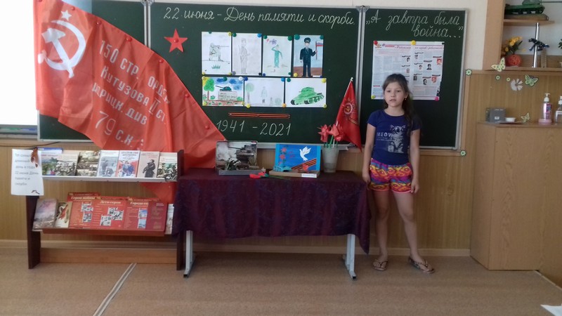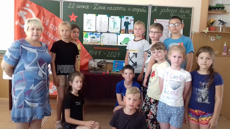 Сегодня в школьном лагере «Радуга» мы говорили об историческом прошлом нашей Родины, о тех страницах Великой Отечественной Войны, которые не вправе забывать. Ребята рассказывали стихи, нарисовали рисунки, сделали своими руками поделки. В лагере прошла минута молчания в память о жертвах Великой Отечественной войны. К этой дате оформили выставку книг «А завтра была война…». На выставке произведения о войне: романы и повести, очерки и рассказы, стихотворения, воспоминания, публицистика. Книги К.Симонова, Б. Полевого, А. Митяева, Б. Полевого рассказывают о грозных и трагических событиях, заставляют нас понять, какой дорогой ценой была завоевана Победа, учат добру, человечности, справедливости. В этот день ребята из юнармейского отряда возложили цветы к мемориалам и памятникам, местам захоронения освободителей в городе и районе.