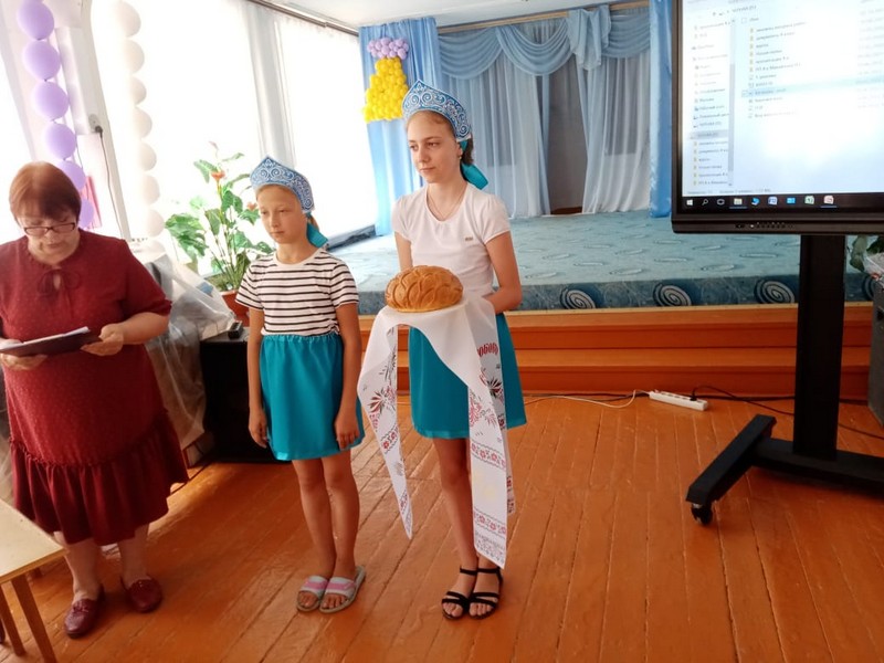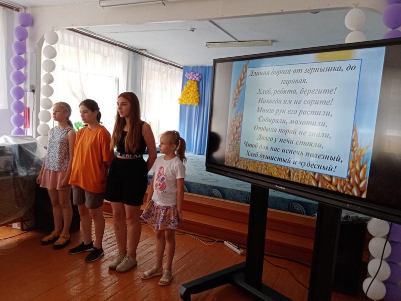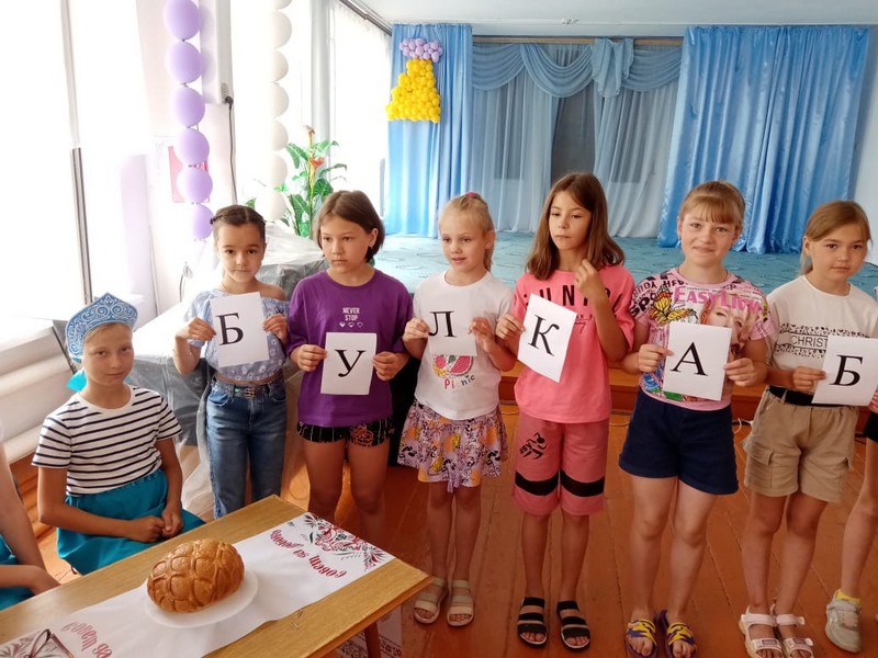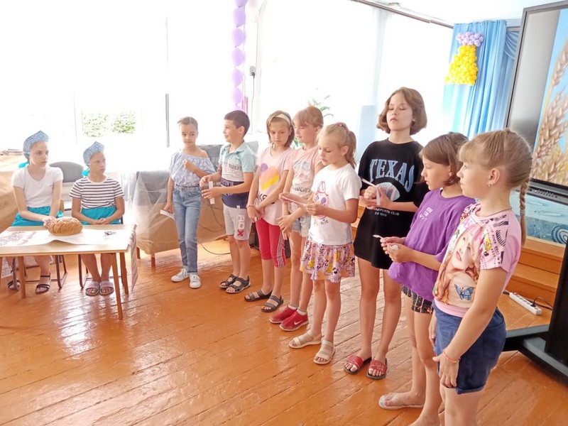 Сегодня, 15 июня, день в школьном лагере прошёл под названием «Цена крошки хлеба велика». Девочки в кокошниках с хлебом – солью встречают детей. И начался разговор о хлебе, о бережном отношении к нему.
