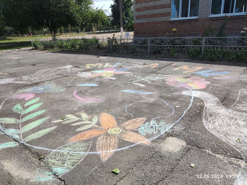 В финале занятия дети разноцветными мелками изобразили на асфальте рисунки "Я за мир!"