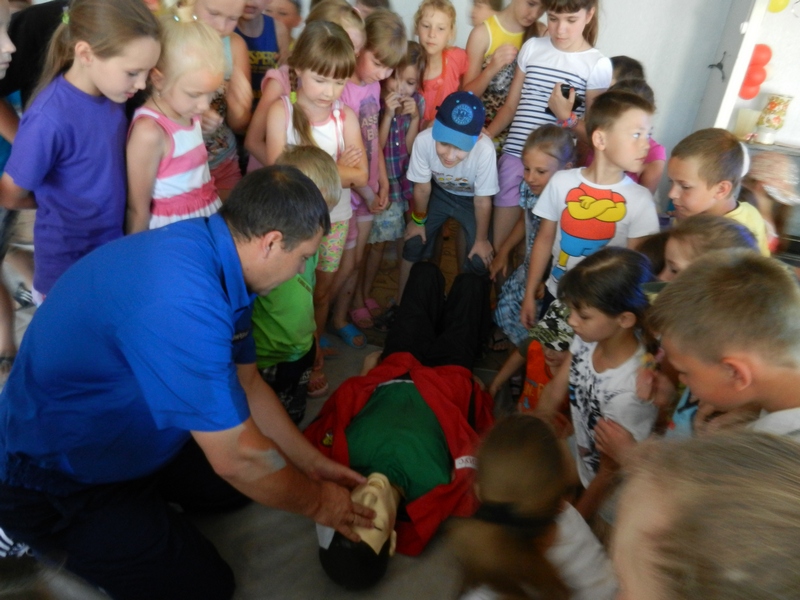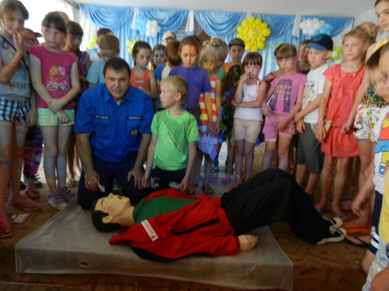 10 июня в гостях у ребят побывали сотрудники поисково-спасательного подразделения: Гайворонцев Валерий Николаевич – командир ПСП и Свинарёв Алексей Викторович – спасатель. Они демонстрировали детям фильмы «Поведение детей на воде», «Поведение детей на берегу реки». Алексей Викторович отработал с детьми практические действия на манекене. Надолго в памяти останется этот жизненно важный урок!