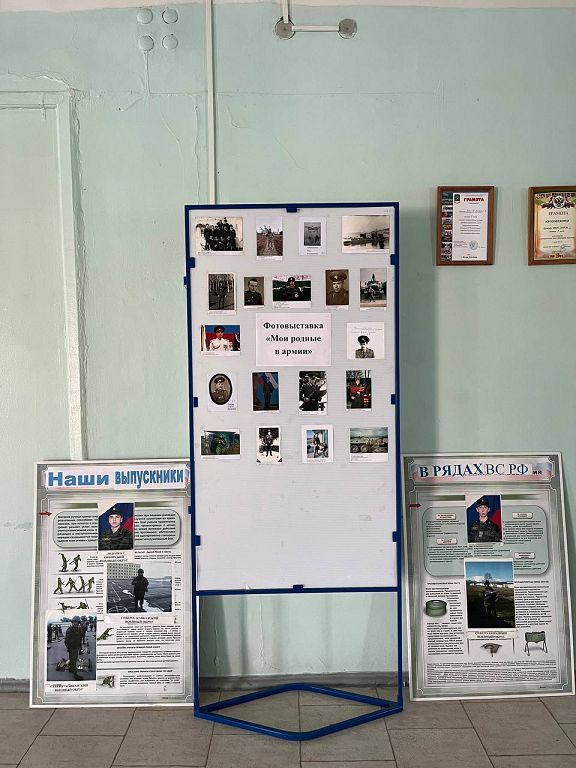 По плану месячника оборонно-массовой работы в библиотеке Лебедева Е.В. организовала выставку книг «Воинской славе, доблести и чести посвящается». Учащиеся 5-8 классов приняли участие в создании фотовыставки «Мои родные в армии».