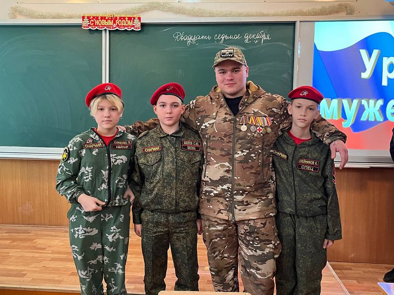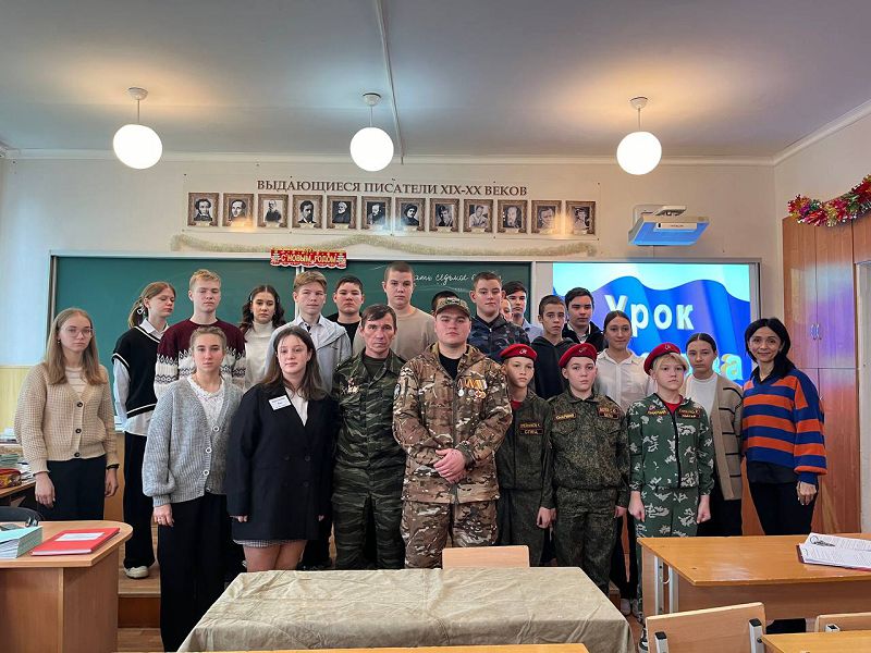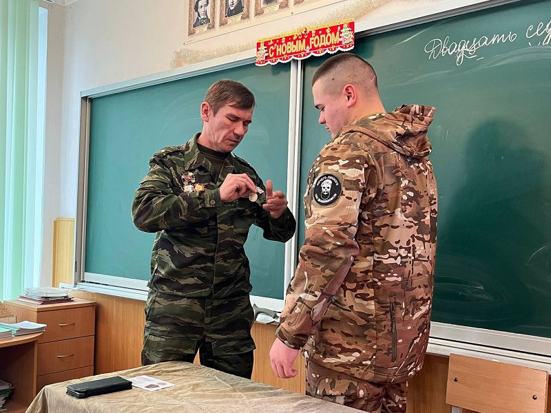 27 декабря в школе прошел урок Мужества с выпускником нашей школы, участником СВО, рядовым Косухиным Анатолием. Во время урока Анатолий рассказал ребятам о трудных боевых ситуациях и о том, как удается с ними справляться, о мужестве и героизме сослуживцев, о патриотическом духе. Председатель Белокалитвинской организации ассоциации ветеранов боевых действий Бубнов И.А. вручил Косухину Анатолию медаль.