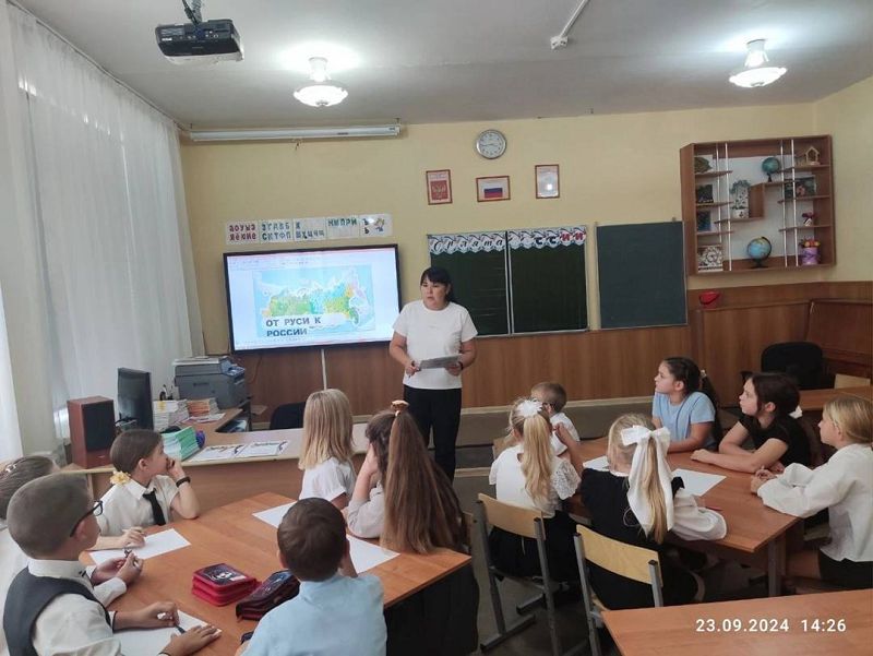 В рамках празднования советник директора по воспитанию и взаимодействию с детскими общественными объединениями Ершова Юлия Вадимовна среди третьих классов провела увлекательную интеллектуальную игру "От Руси к России"
