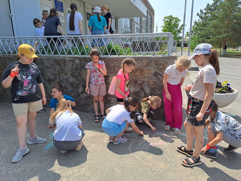 Участники были разделены на команды при помощи цветных ленточек и приступили к выполнению заданий. Дети читали зашифрованный тест, рисовали мелом на асфальте сказочных героев, восстанавливали текст сказок, читали выразительно.