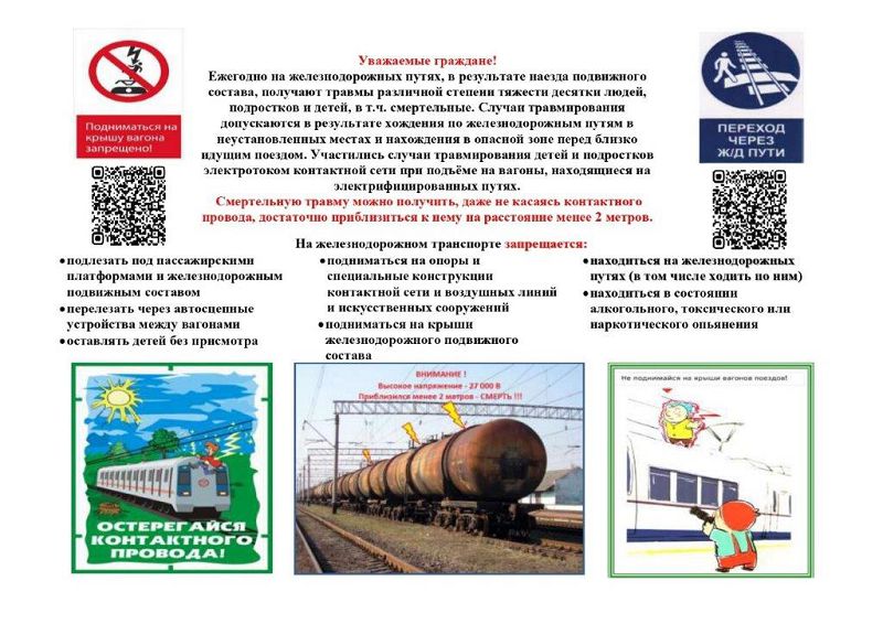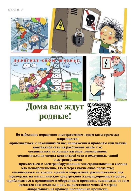 - не поднимайтесь на крыши вагонов поездов, опоры и специальные конструкции контактной сети, воздушных линий и искусственных сооружений, ведь напряжение в проводах достигает 27500 Вольт!