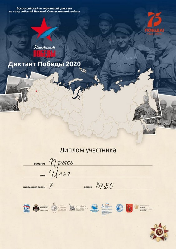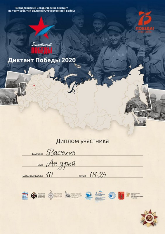Диктант Победы» был организован по инициативе «Единой России» в рамках федерального партийного проекта «Историческая память» совместно с Российским историческим обществом, Российским военно-историческим обществом и «Волонтерами Победы».