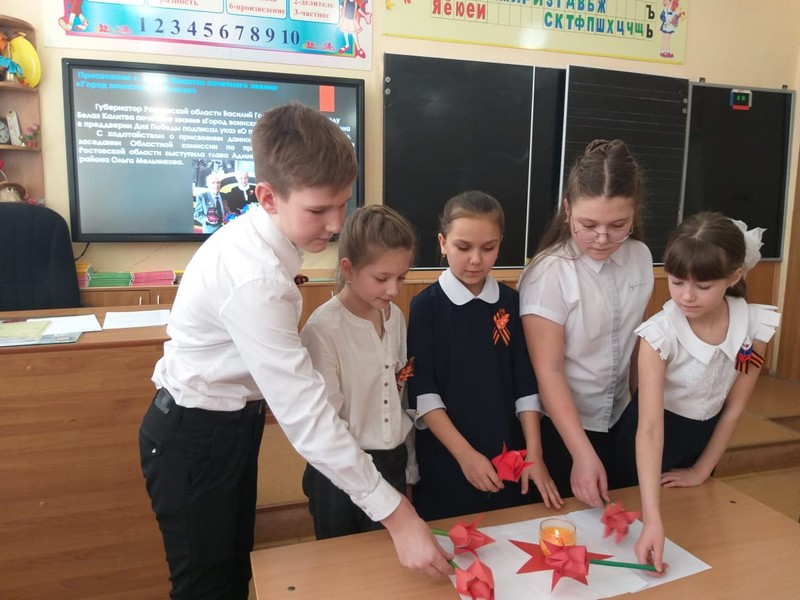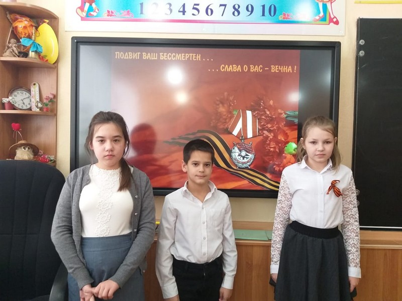 В этот памятный день в школе прошли тематические беседы, классные часы, Уроки мужества и памяти по темам: «И помнит мир спасенный», «Белая Калитва - город воинской славы и доблести», «Ты выстоял мой край родной», « Подвиг ваш бессмертен, слава о вас вечна!». Программа классных часов была насыщена историческими данными, видеорядом с патриотической музыкой, стихотворениями о героях ВОВ, о жизни и горе вдов и детей. Навечно сохранятся в памяти поколений имена атаевцев и их командира Аннаклыча Атаева, отдавших жизни при освобождении нашего города. Память погибших учащиеся и педагоги почтили минутой молчания.