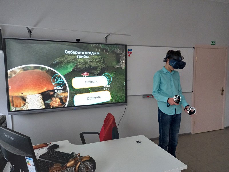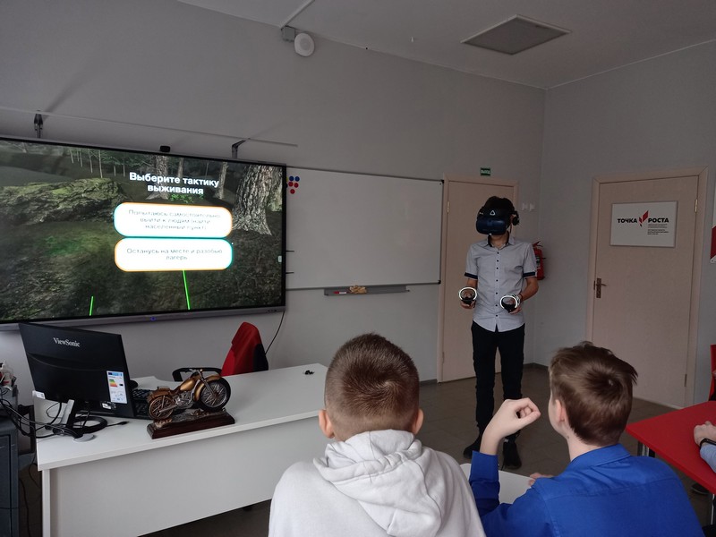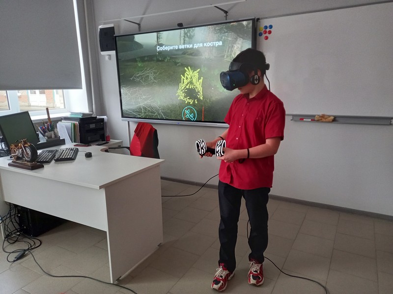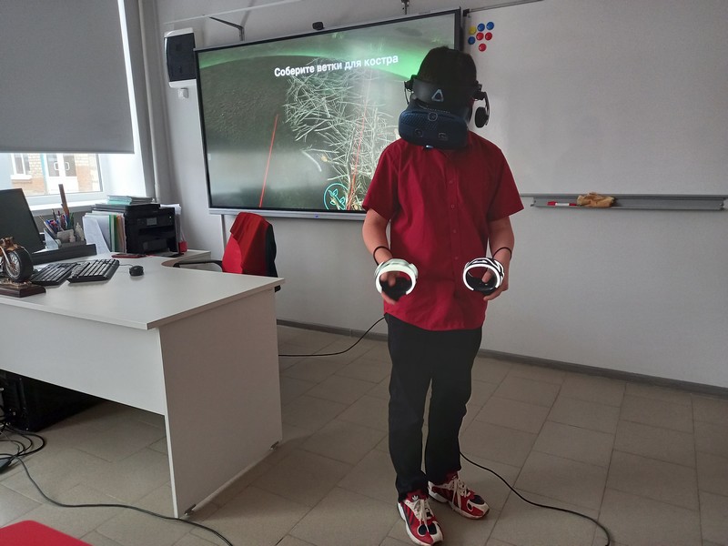 Ребята отрабатывали и совершенствовали свои навыки по теме «Автономное существование человека в природной среде» и "Оказание первой помощи пострадавшим при обморожениях". Благодаря шлему виртуальной реальности HTC VIVE COSMOS, обучающиеся погружались в виртуальную природную среду и выполняли поставленные задачи. Им необходимо было собрать ветки для костра, выбрать безопасное место для костра, развести костер, чтобы высушить промокшую одежду, собрать съедобные грибы и ягоды, построить место для укрытия, защититься от дикого зверя и подать сигнал бедствия, а так же освоили правила оказания первой помощи при обморожениях. Обучающиеся с большим интересом выполняли предложенные задания, умело управляли контроллерами, старались уложиться в установленное время. По завершению задания, каждый мог увидеть набранные баллы и допущенные ошибки в ходе выполнения работы. Занятие получилось интерактивным, увлекательным, практичным!