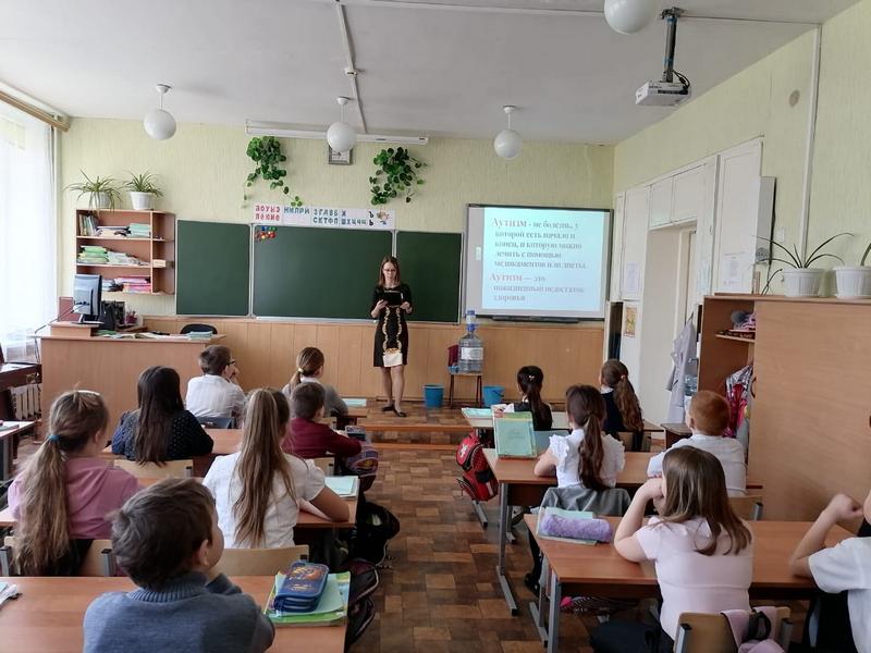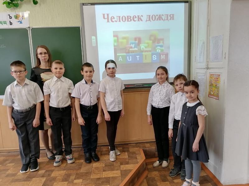 В целях развития чувства необходимости помогать людям, страдающим неизлечимым заболеванием, и повышать уровень комфортности их жизни, формирования у обучающихся осознания важности проблемы аутизма, а так же воспитания чувства сострадания по отношению к людям больным аутизмом в третьих классах прошел классный час «Человек дождя». Ребята узнали, что такое аутизм, как общаться и дружить с детьми-аутистами, чем они отличаются от других детей, рассмотрели творчество этих людей.