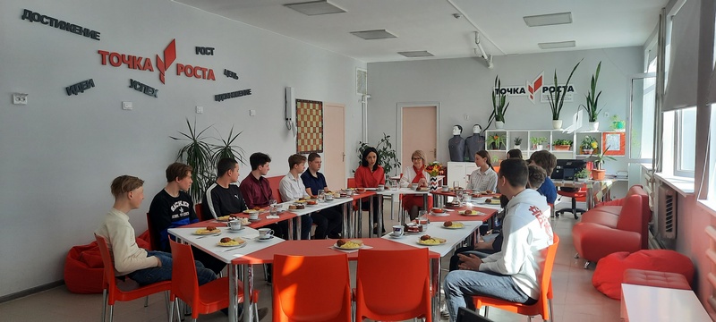 На базе Центра "Точка роста" прошло необычное мероприятие «Завтрак с директором ». Во время завтрака учащиеся обсуждали с Татьяной Ивановной назревшие проблемы школы и повседневности, говорили об учебном процессе, досуге школьников. В ходе разговора ребята выражали свое мнение и предлагали необычные решения.