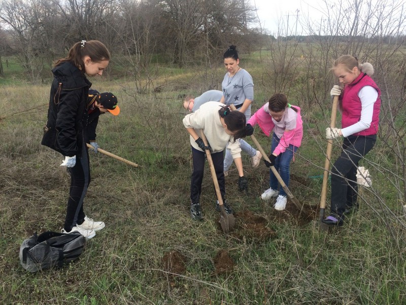 Колесникова В., Антонова А., Кондрашова В., Закирзянова А., Кобелев А. и Попович Т. Подготовили саженцы для посадки на Братской могиле под хутором Чапаев.
