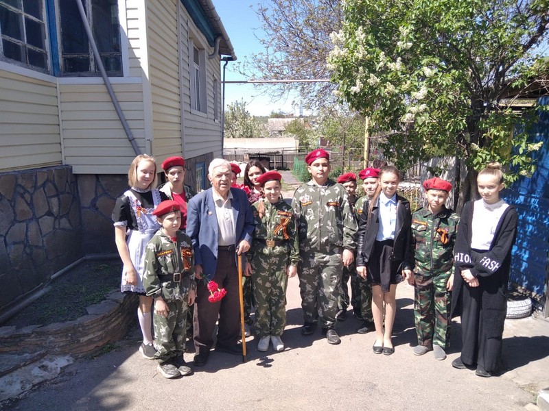 В преддверии Дня Победы Юнармейцы 6а класса поздравили на дому ветерана Великой Отечественной войны Соловьева А.Ф. с наступающим праздником - Днём победы.