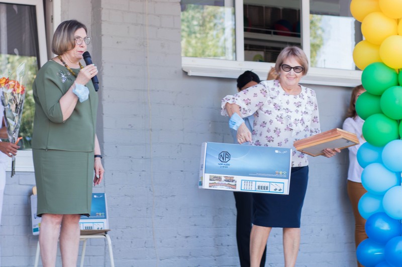 Управляющая делами администрации Белокалитвинского района Василенко Любовь Григорьевна поздравила ребят и вручил им подарки от Главы Администрации Белокалитвинского района Ольги Александровны Мельниковой – портфели и большой набор микрофонов для нашей школы.