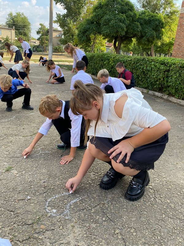 В рамках тематического мероприятий обучающиеся почли память жертв террористических атак и военнослужащих, погибших при исполнении служебного долга минутой молчания. Ребята на асфальте нарисовали голубей, которые являются символом мира.