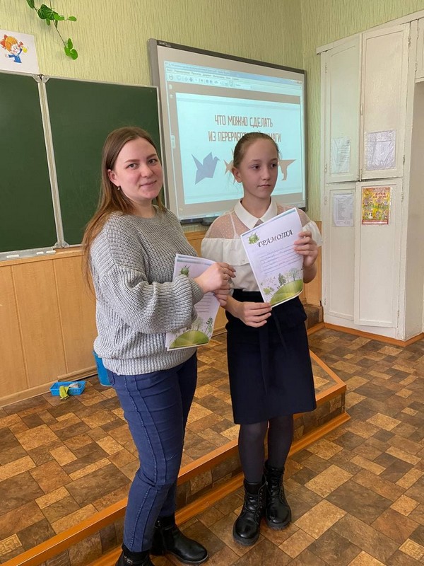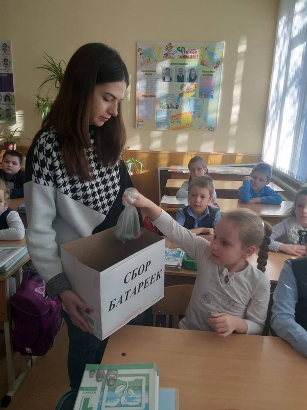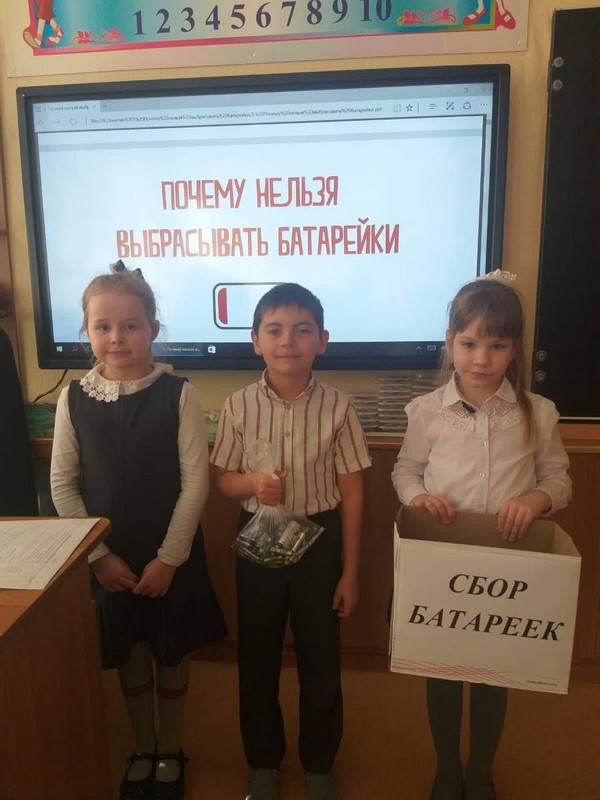 В «1а», «3б», «3в», «4а» классах прошли экологические уроки «Почему нельзя выбрасывать батарейки» и «Что можно сделать из переработанной бумаги».