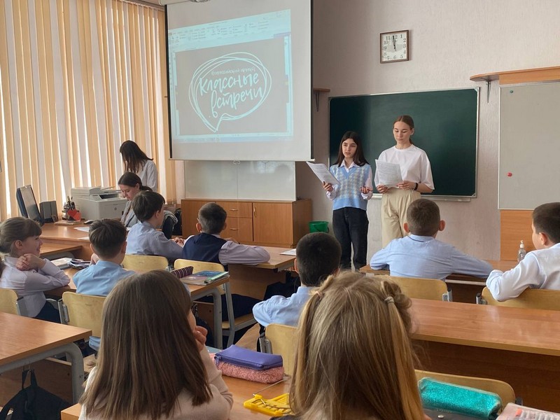 С целью развития деловых, творческих, организационных качеств школьников, вовлечения в деятельность РДШ и развития социальной активности, активисты школы приняли участие в проекте «Классные встречи РДШ». Ребята с творчеством подошли к своей задаче и провели классные часы в 8 «Б» и 5 «В» классах на темы: «Успеху все возрасты покорны», «Движение вверх».