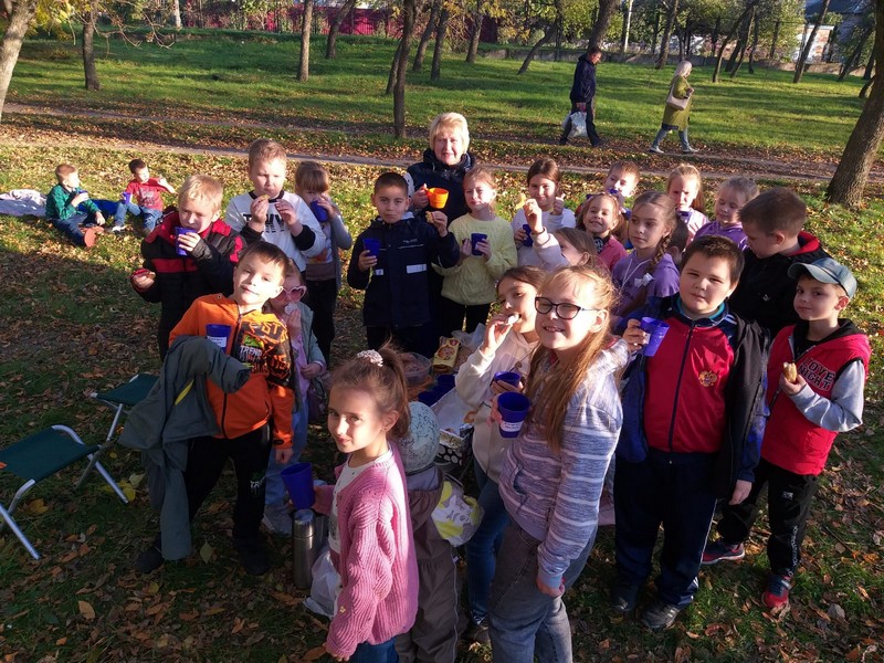 А закончилась экскурсия весёлым чаепитием всем классом на солнечной полянке!