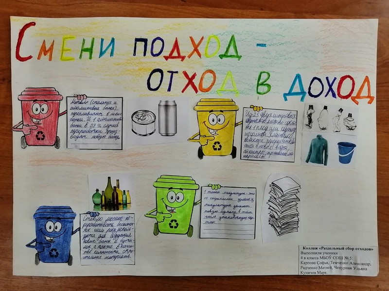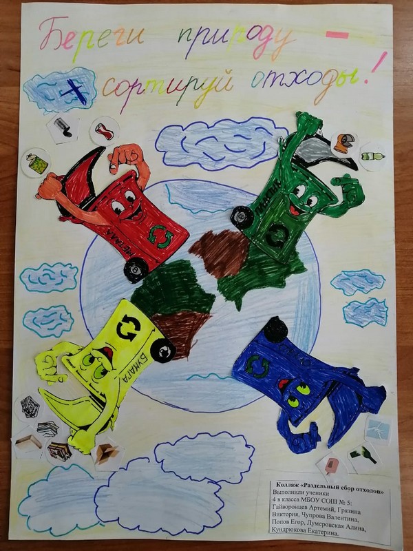В номинации фестиваля «Раздельный сбор мусора» учащиеся в ходе групповой работы выполнили коллаж на данную тематику.