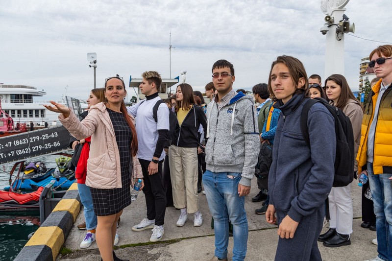На следующий день посетили крупнейших ботанический сад - ,,Дендрарий '', после была прогулка на теплоходе. На следующий день мы поднялись на высоту 2200м на горнолыжном курорте Красная Поляна. Также посетили орнитологический парк.