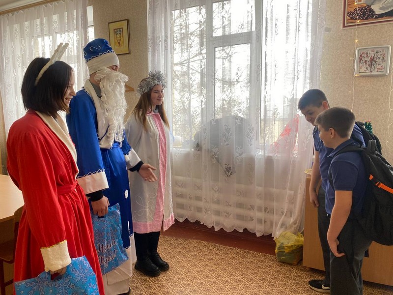 В преддверии Нового года Дед Мороз и Снегурочка подарили новогоднее настроение детям военнослужащих, защищающих Родину и вручили подарки.