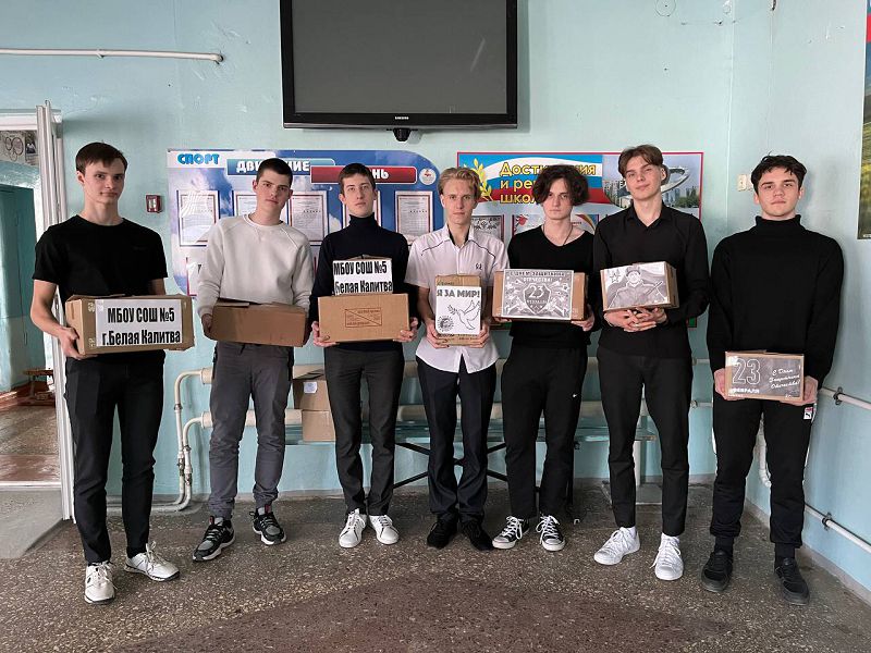 Учащиеся 5а, 6б и 6в собрали гуманитарную помощь, которую совместно с кадетским корпусом отправили в 3 роту 107 батальона 100 бригады 1 армейского корпуса ДНР.