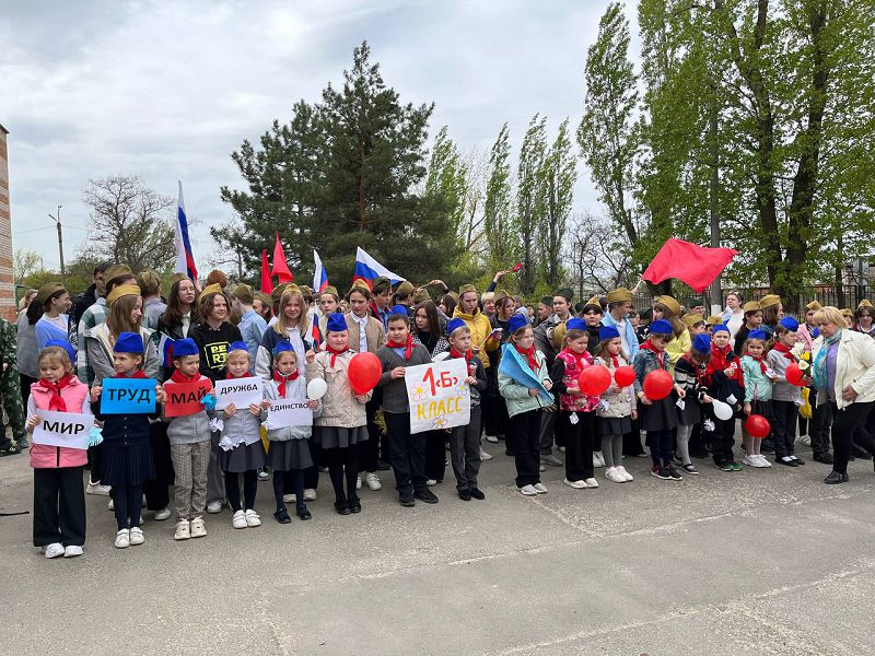 В канун праздника Весты и Труда в школьном дворе ребята приняла участие в традиционном шествии. Колонну украшали флаги, цветы, голуби и шары. Демонстрация оставила много положительных эмоций и создала хорошее настроение.