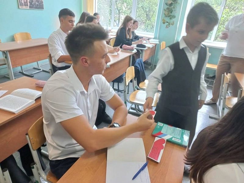 В ходе акции «Сердце Беслана» ученики начальной школы раздавали старшеклассникам флаеры с информацией о жертвах Беслана. Чтобы помнили.