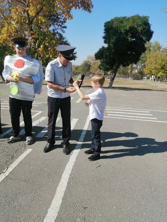 На празднике присутствовал Инспектор по пропаганде БДД ОГИБДД Отдела МВД России по Белокалитвинскому району старший лейтенант полиции Соколов С.В., который вручил детям световозвращающие наклейки на рюкзак.