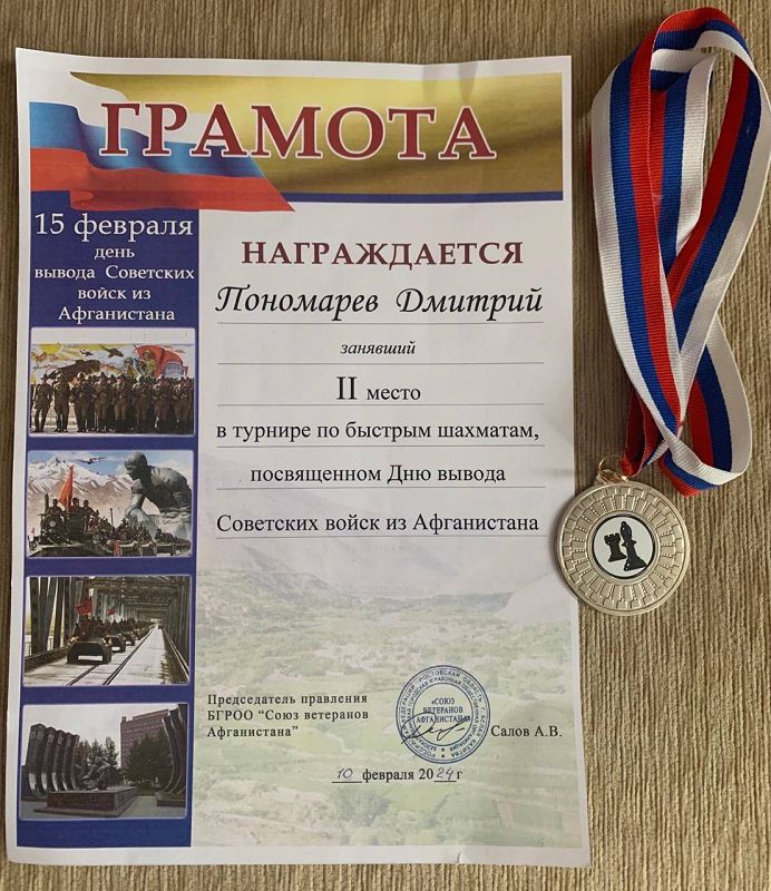 10 февраля состоялся турнир по активным шахматам, посвященный Дню вывода Советских войск из Афганистана. Призеры были награждены грамотами, медалями, сладкими призами.