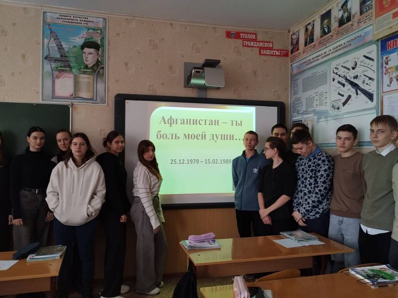 В 9 а классе прошёл классный час "Афганистан - ты боль моей души", посвящённый 35 годовщине вывода войск из Афганистана.
