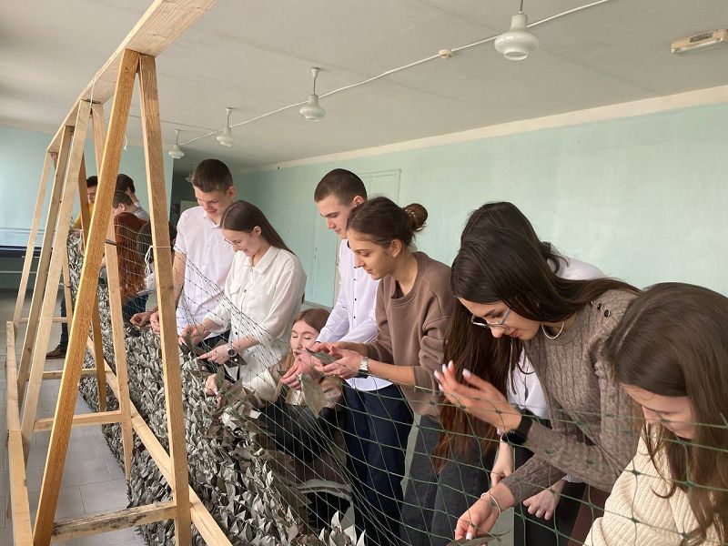 Маскировочные сети — самый распространенный тип маскировки, который позволяет обмануть врага, лишить его ориентировок, спрятать позиции. Потребность в маскировочных сетках очень высока. Педагоги и учителя нашей школы вместе включились в активное участие в таком важном деле.