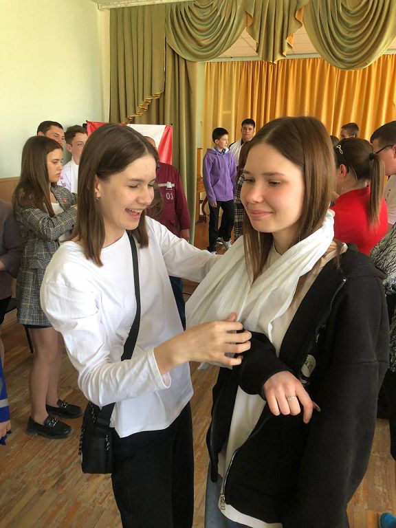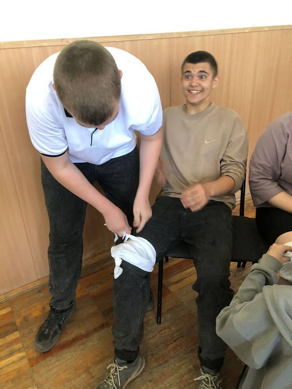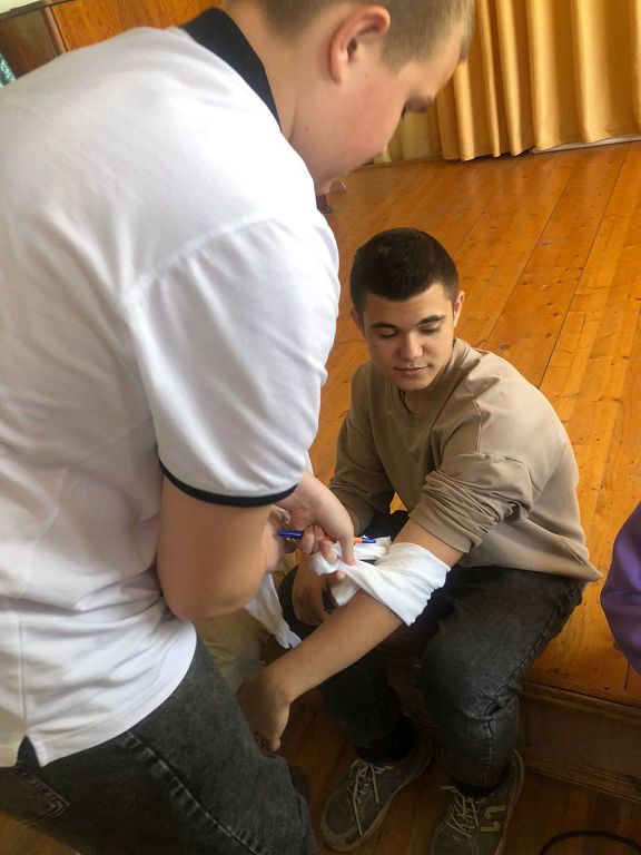 Ученики узнали, что такое «десмургия» и как при помощи обычной косынки оказать помощь пострадавшим.
