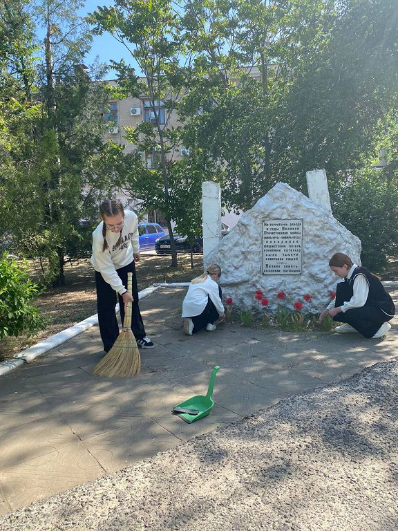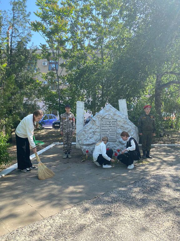 Волонтеры привели в порядок мемориал памяти, закрепленный за МБОУ СОШ№5, а так же был выставлен караул, чтобы отдать честь погибшим.