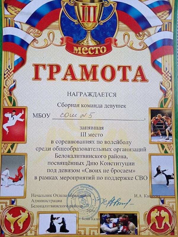 Поздравляем сборную команду девушек нашей школы, занявшую третье место в соревнованиях по воллейболу среди образовательных учреждений Белокалитвинского района.