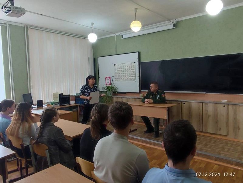 В преддверии праздника "Дня Героя Отечества" советник директора по воспитанию и взаимодействию с детскими общественными объединениями Ершова Юлия Вадимовна провела урок мужества с учащимися 8, 10 классов.