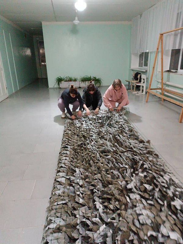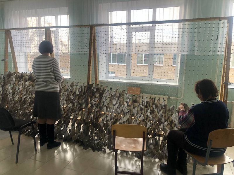 Под руководством Масловской Людмилы Борисовны, Лаврухиной Светланы Витальевны, Симоновой Людмилы Михайловны в нашей школе плетут маскировочные сети для учасников СВО
