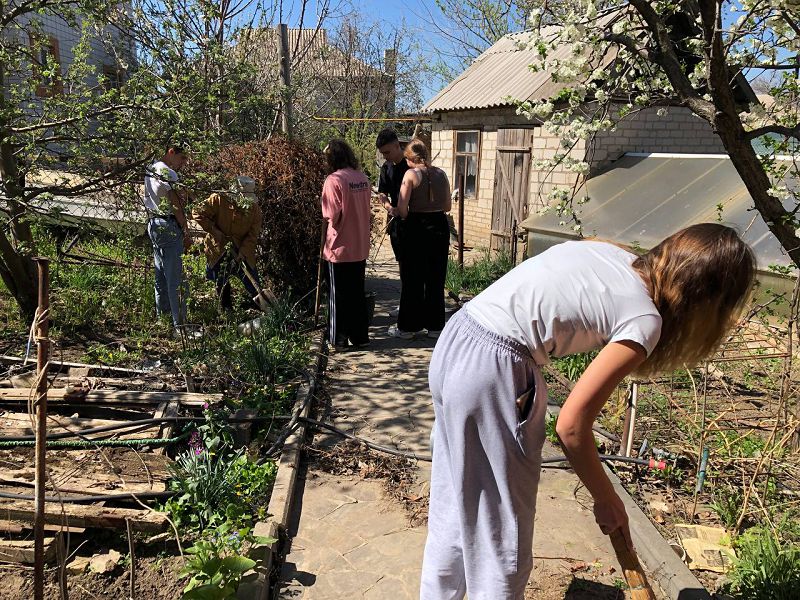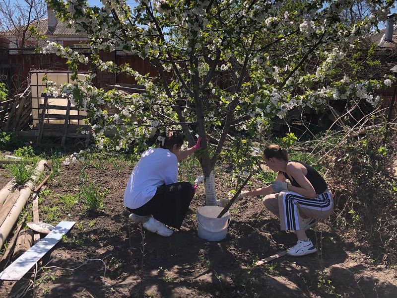 18 апреля активисты нашей Первички, посетили ветерана педагогического труда Валентину Семеновну Мохову, ребята оказали помощь в уборке двора, перекапали землю в теплице, побелили деревья и и помогли избавиться от сорняков.