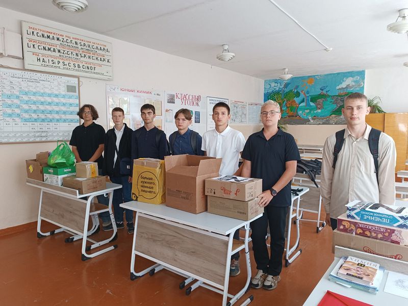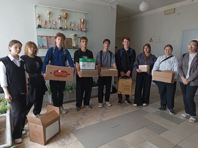 Учащиеся 8 - 11 классов и их родители приняли участие в сборе гуманитарной помощи для участников специальной военной операции.