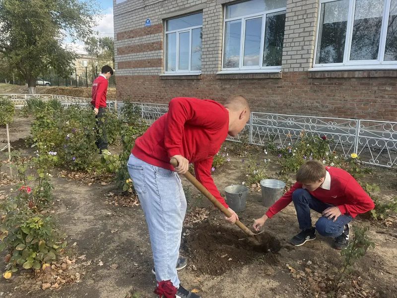 19 октября в рамках дня Древонасаждения Учащиеся нашей школы высадили кусты роз на территории школьного двора.