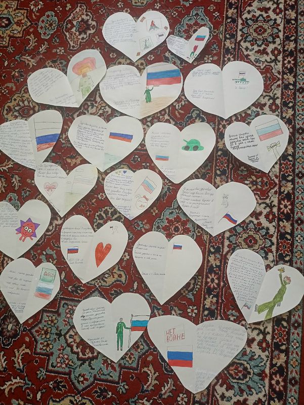 Ученики 4б класса под руководством классного руководителя Лунченко Л.В. и начальника управления социальной защиты населения Молодёжной Администрации Белокалитвинского района Чередниченко Алёны, написали письма солдатам.