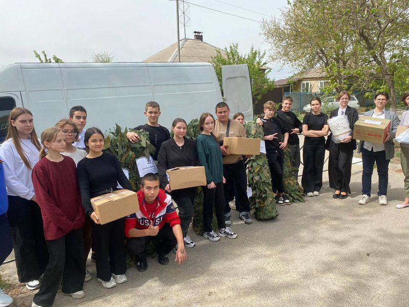 Под руководством Масловской Л. Б. учащиеся, педагоги, жители нашего микрорайона приготовили и отправили посылки для детей и пожилых людей в Запорожье. А для 22 разведбригады маскировочные сети и письма от детей.