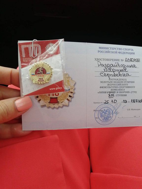 На открытии Спартакиады Белокалитвинского района Раздайводиной М. С. вручили «золотой значок» ГТО. Поздравляем с очередным знаком отличия ГТО.
