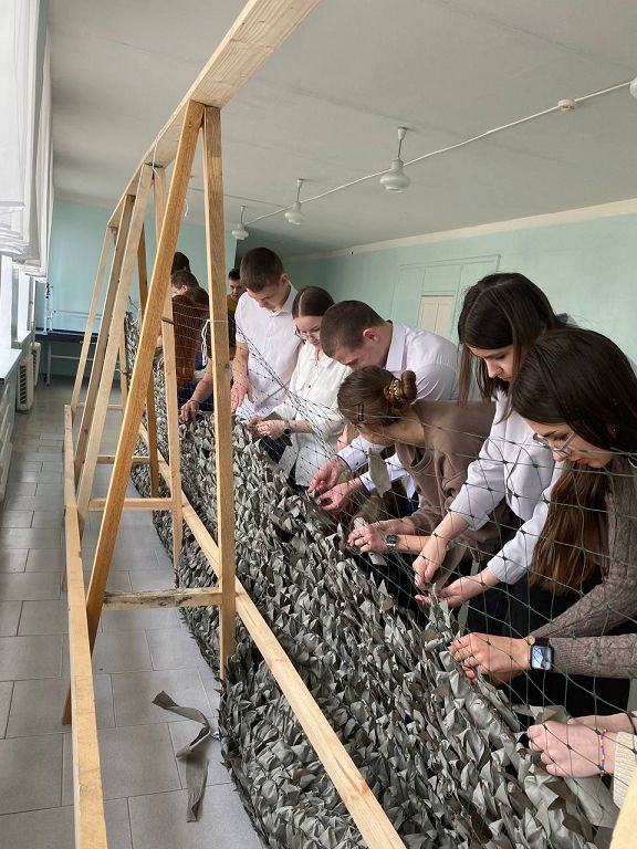 Маскировочные сети — самый распространенный тип маскировки, который позволяет обмануть врага, лишить его ориентировок, спрятать позиции. Потребность в маскировочных сетках очень высока. Педагоги и учителя нашей школы вместе включились в активное участие в таком важном деле.