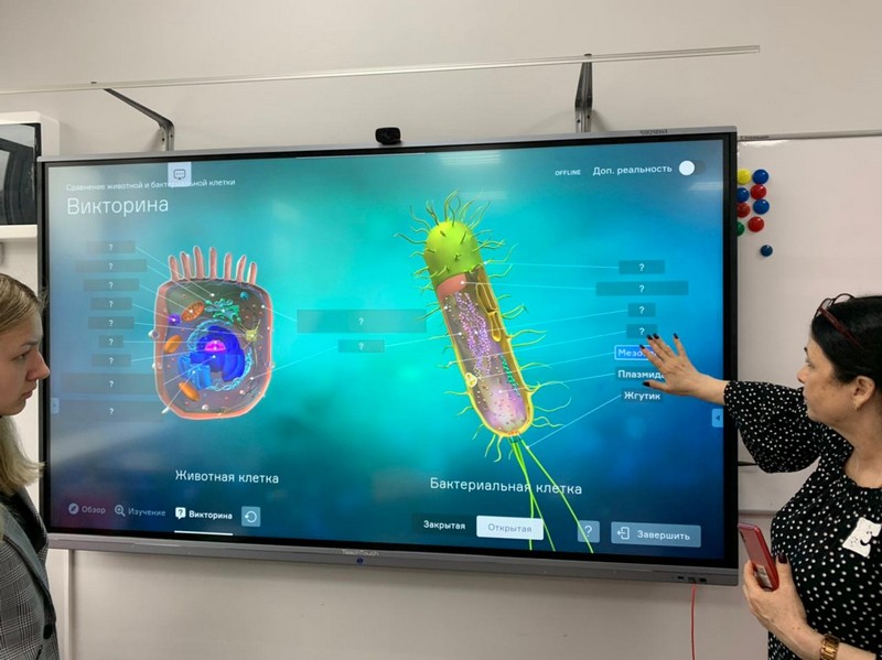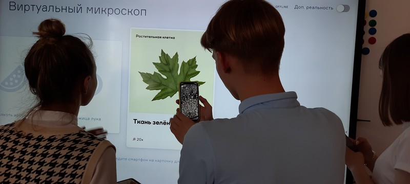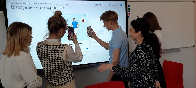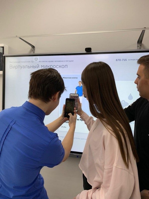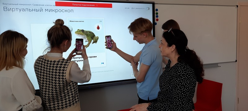 В школьном Центре "Точка роста" состоялся урок биологии в 10 классе в рамках программы апробации образовательных решений в виртуальной и дополненной реальности. Школьники имели возможность работать на интерактивной доске с дублированием на телефоне в дополненной реальности.