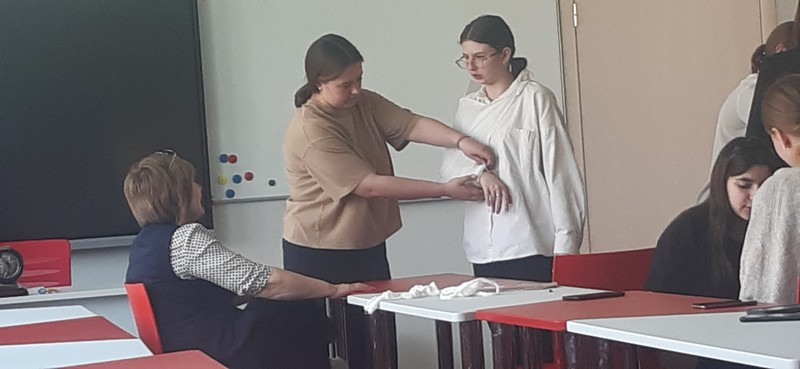 Также на уроках используется набор имитаторов травм и поражений, шина лестничная, воротник шейный, табельные средства для оказания первой медицинской помощи.